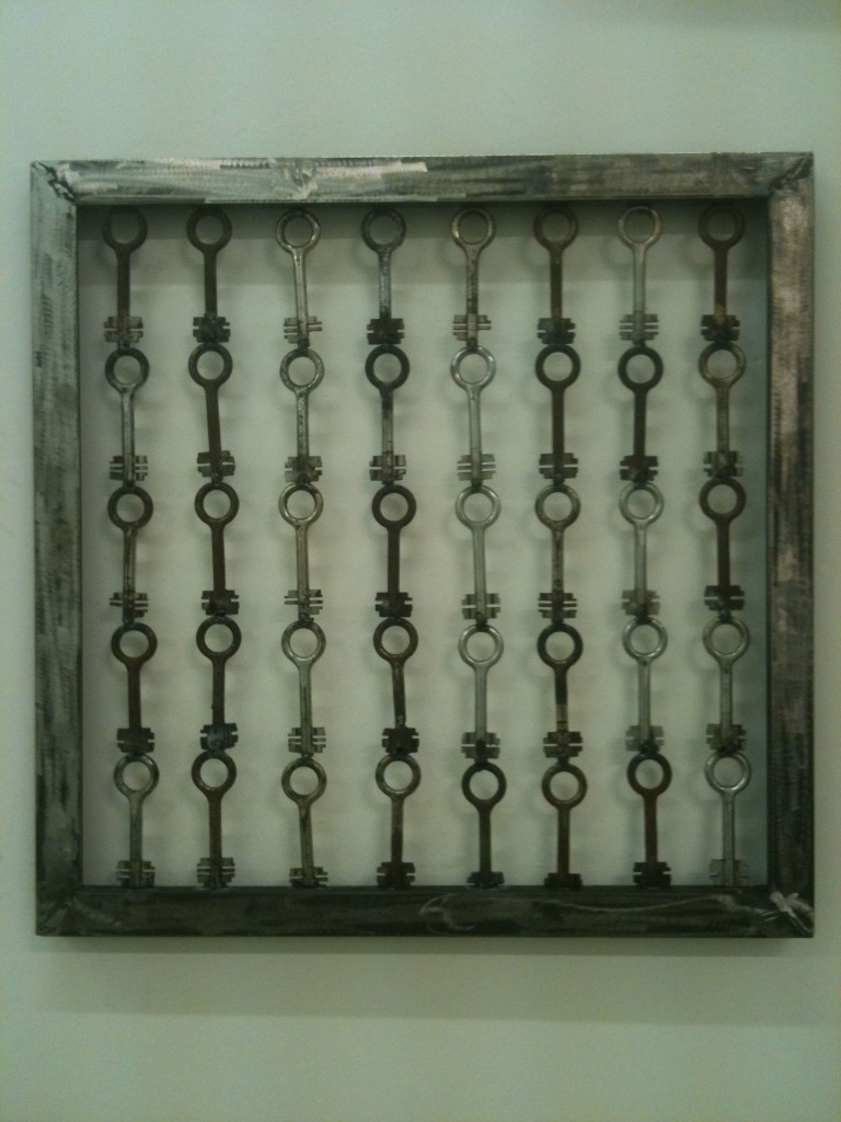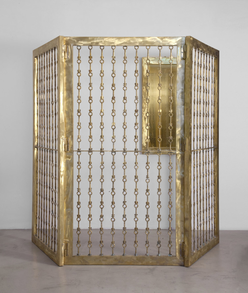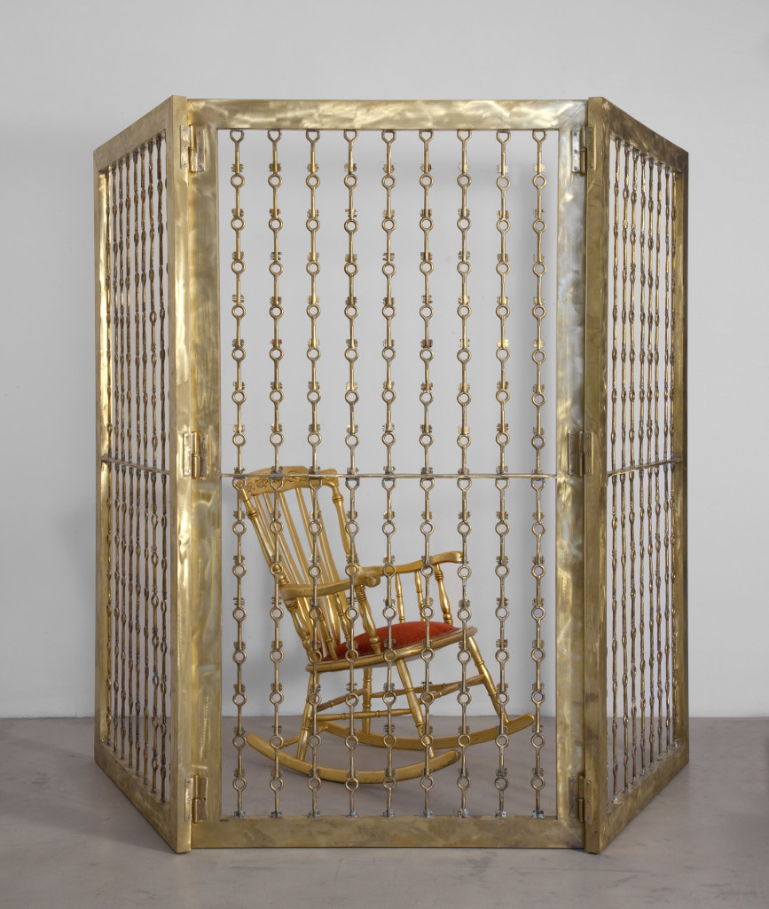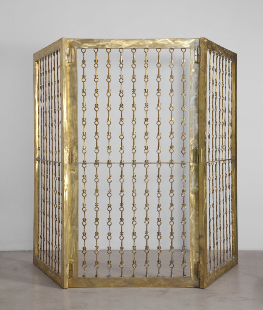 OPERE 2012 di davidpb|Pubblicato 11 Aprile 2019 Condividi e stampa “Gabbiadorata” 2012 432 chiavi di ottone del carcere di Rebibbia, 3 elementi 212×111 cm. cad. “Gabbiadorata” 2012 432 chiavi di ottone del carcere di Rebibbia, 3 elementi 212×111 cm. cad. “Gabbiadorata” 2012 432 chiavi di ottone del carcere di Rebibbia, 3 elementi 212×111 cm. cad. “Gabbiadorata” dettaglio 2012 432 chiavi di ottone del carcere di Rebibbia, 3 elementi 212×111 cm. cad. “Pazzo” 2012 ferro e lenti bifocali 104x52x43 cm “Professionista” 2012 ferro, legno,luce stroboscopica 61x164x157 cm. “Talismano” 2012 ferro, vetro e lampadine a fiamma Ø 77 cm “40 giorni” 2012 40 chiavi di ferro del carcere di Rebibbia 69x69x4 cm “Guizzo” 2012 ferro e alluminio 30x20x6 cm. “Piccoli caimani” 2012 alluminio e ferro 21×7,5×7,5 cm. “Strumento per parlare con Marilyn” 2012 ferro,telefono, resina 42x42x26 cm.